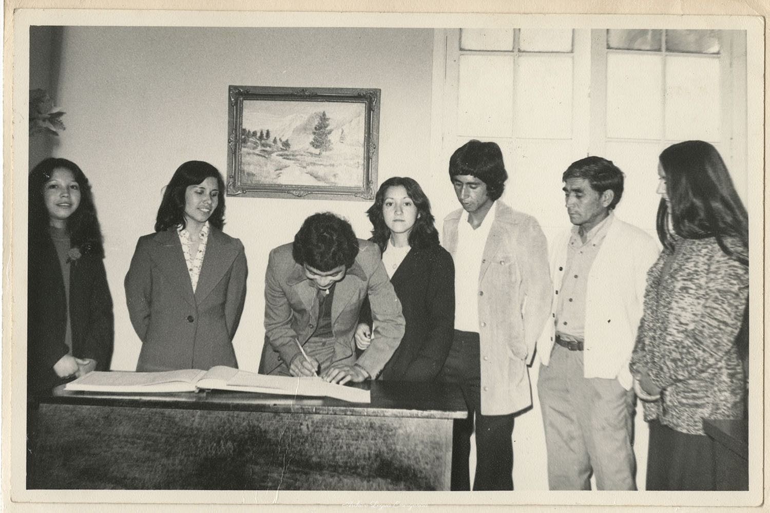 • Matrimonio civil entre Humberto Espinoza y Fanny González. En la imagen: Nelly Espinoza. Gloria Espinoza (testigo) Juan Carlos Espinoza. Manuel Gonzalez. Teresa Gonzalez. 12 de nomviembre 75 civil 6 dic iglesia-