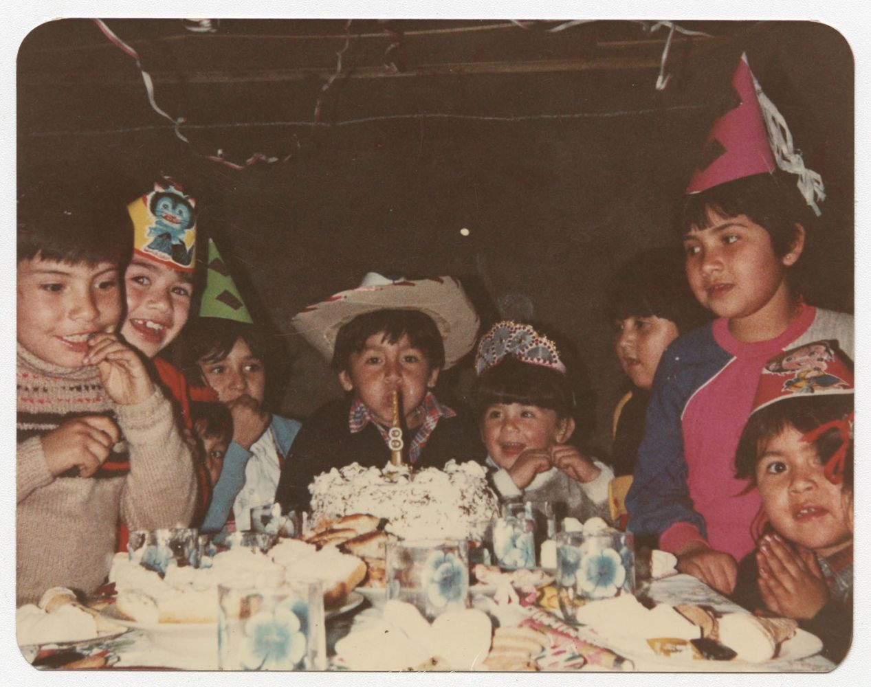 • Cumpleaños n° 8 de Jose Luis. En la imagen: David Cespedes. Michel Hidalgo, Fanny Espinoza Romina Espinoza, Claudia Barrios Calle Comandante Riesler 456. año 1984.