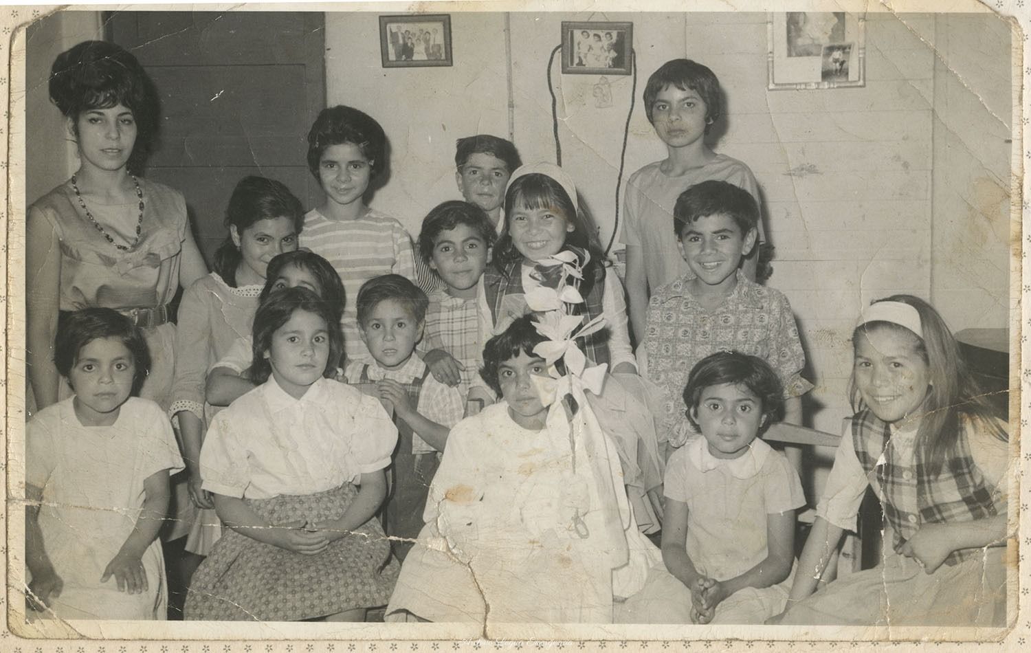 • Primera comunion de Maria Diaz Vilchez. Pelu, Mercedes Bonta, Patricia Reyes, Julia Molina, Alicia Molina, Orlando Diaz, Roberto Diaz y Alberto Diaz, Susana Diaz, Magaly Diaz, Patricia Diaz Aranguiz. Decada de los 60. Casa Jorge Caning.