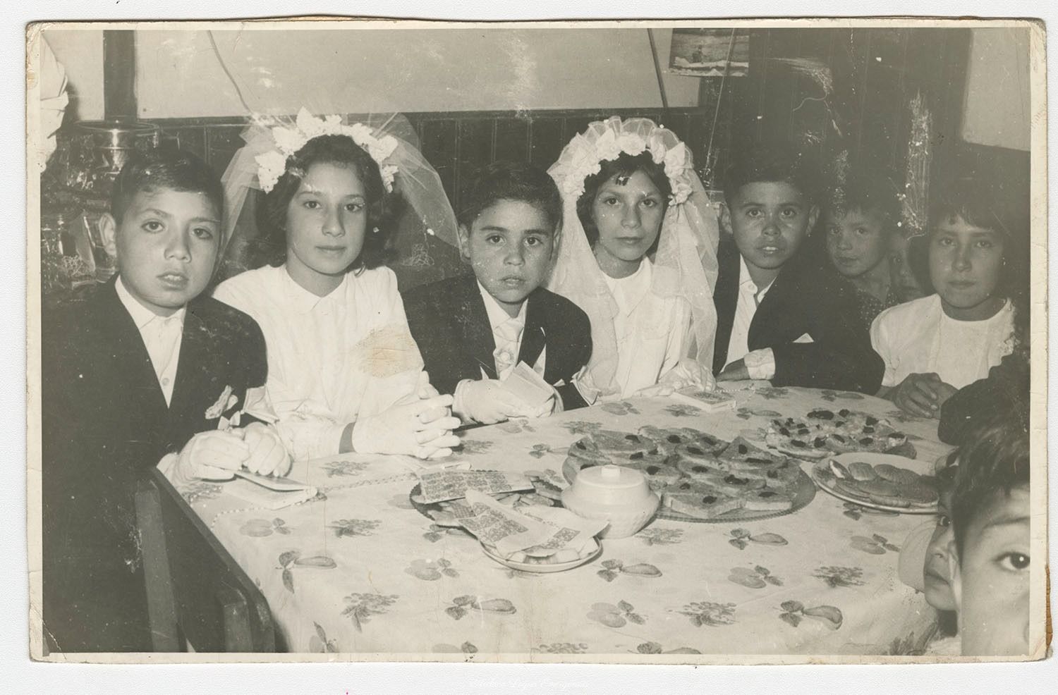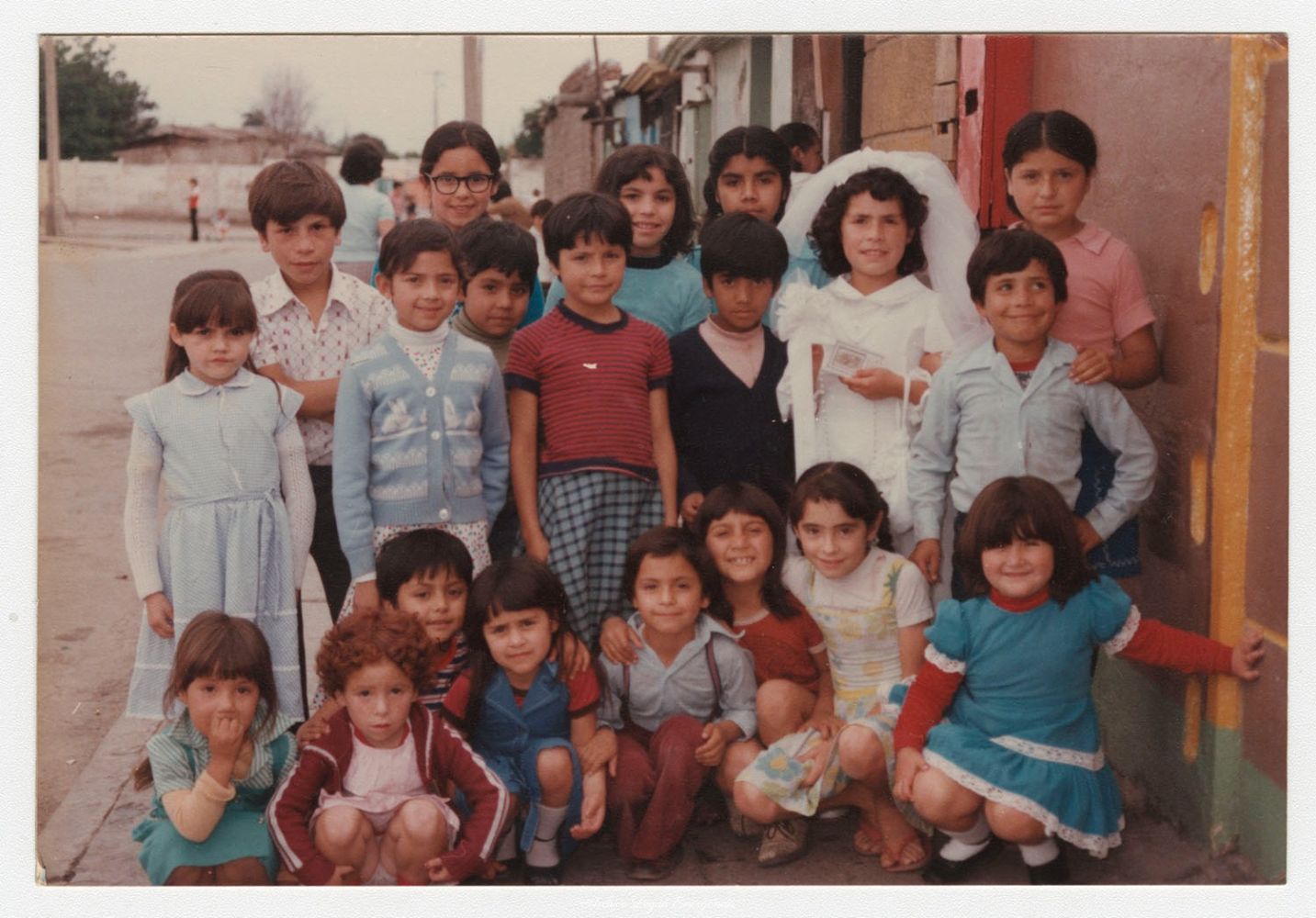 • Susana Duran junto a su hermano Tomás y sus amigos del barrio en calle Nuño de Silva, luego de haber realizado la Primera Comunión. Década del 70.