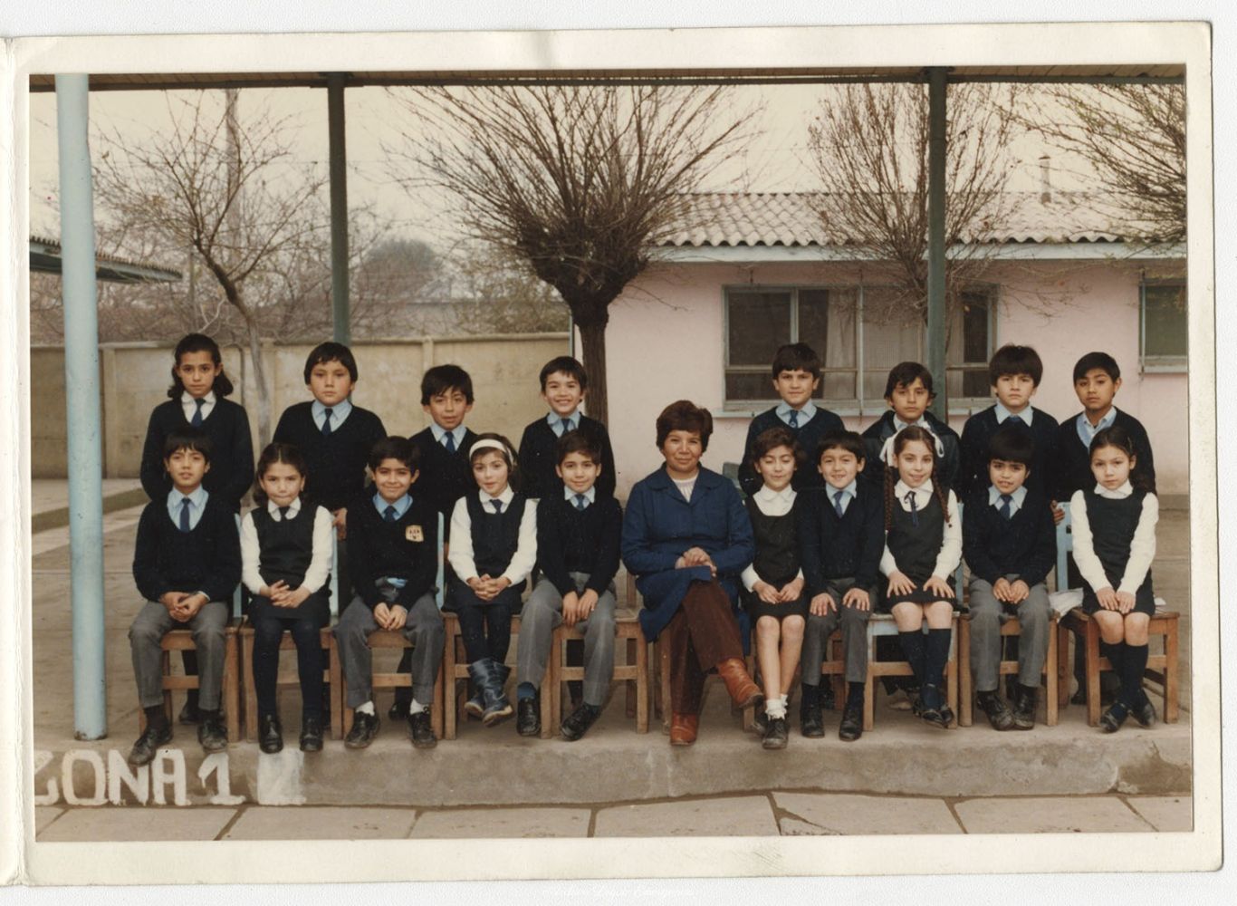 En la imagen José Luis Espinoza el segundo sentado a la izquierda de la profesora (derecha de la imagen) Fotografia del 4° año básico 1985. La Legua, Colegio localizado en calle San Gregorio.Gonzalez_Gatica Gonzalez_GaticaDate: December 15th, 2020