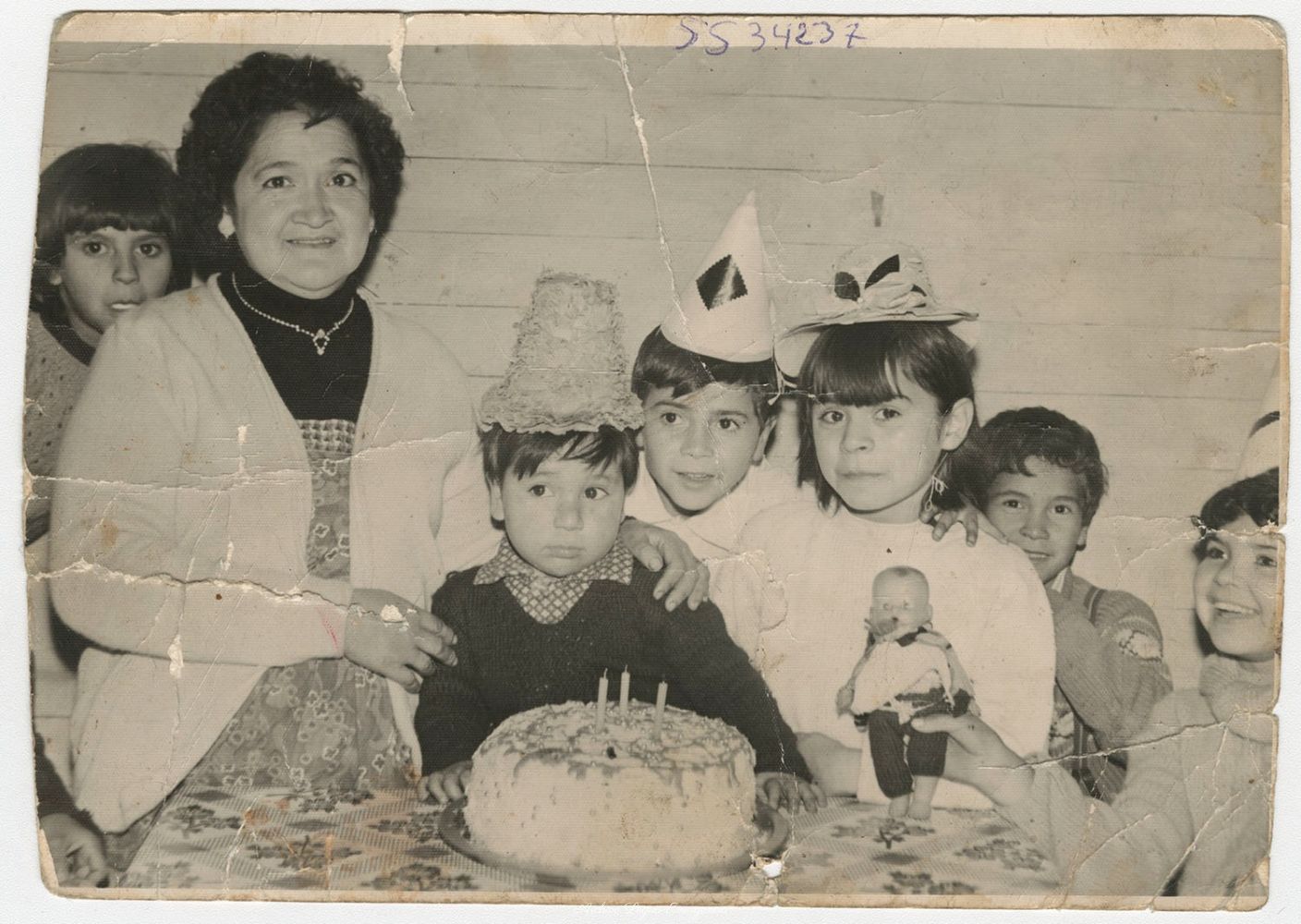 • Cumpleaños de Adelaida Cespedes Maturana junto a su abuela Adelaida Pizarro Peredo. año 1974. calle juegos infantiles. fotografo: Mario Alarcon.