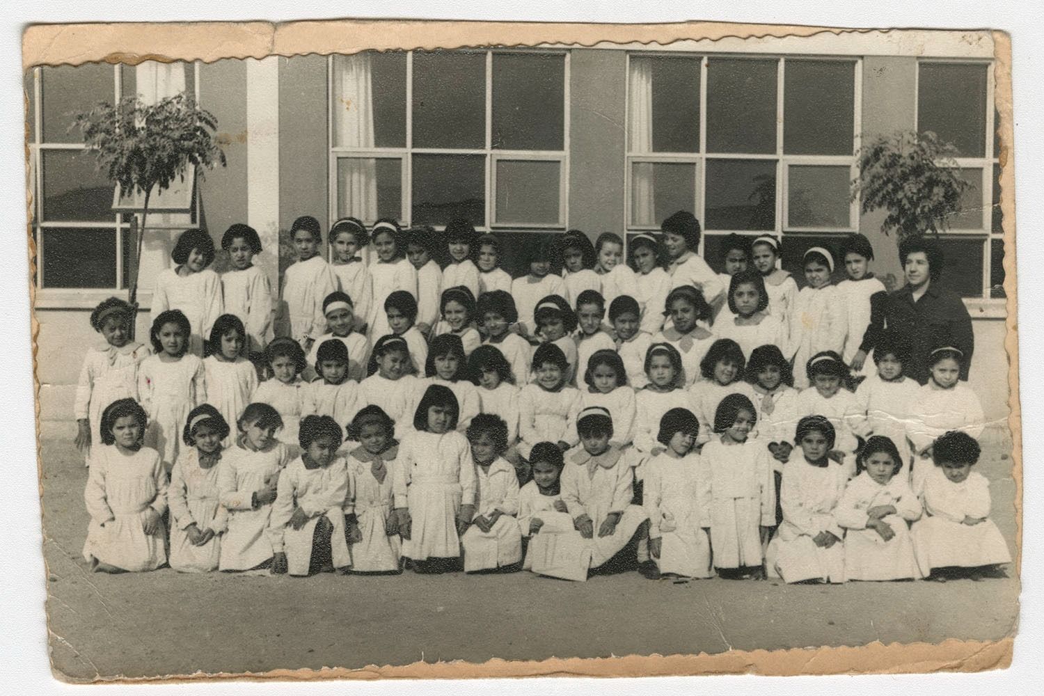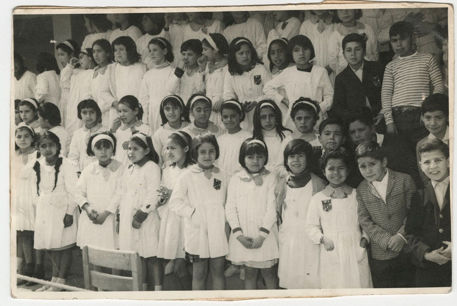 • Nancy Fuentes en básica en el colegio 17, escuela Rep Federal de Alemanía, con la profesora Blanca. 1961.