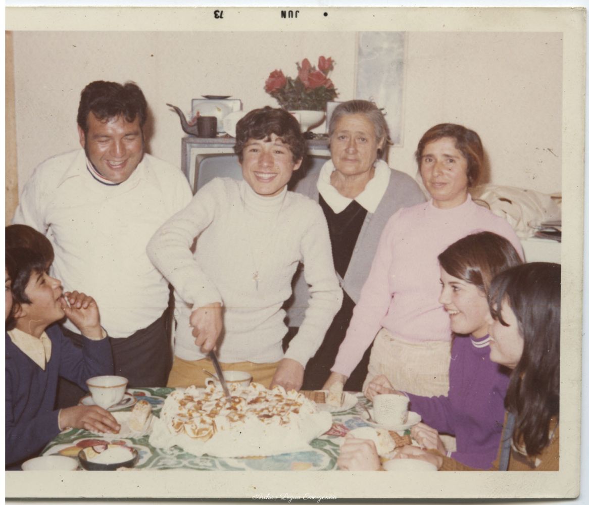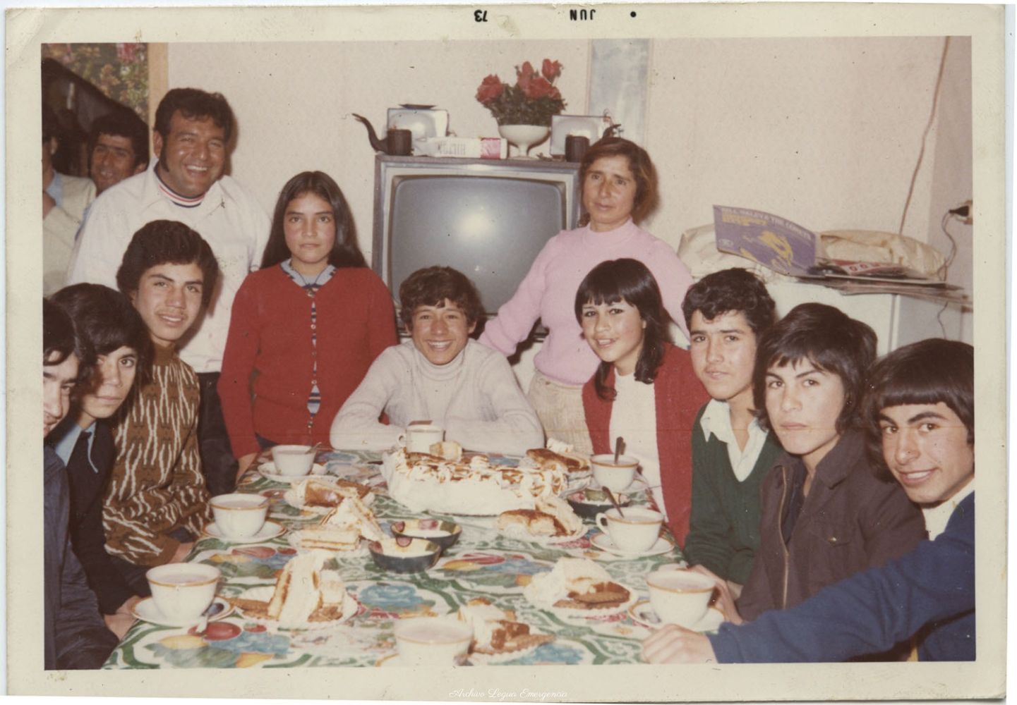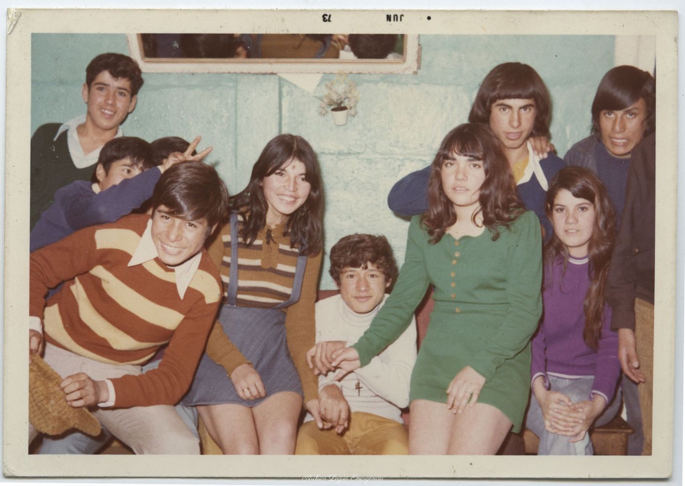 • En la imagen amigos del colegio y vecinos de Jorge Lara (al centro) celebrando el cumpleaños n° 15 de Jorge el año 1973. Casa de calle Sanchez Colchero.