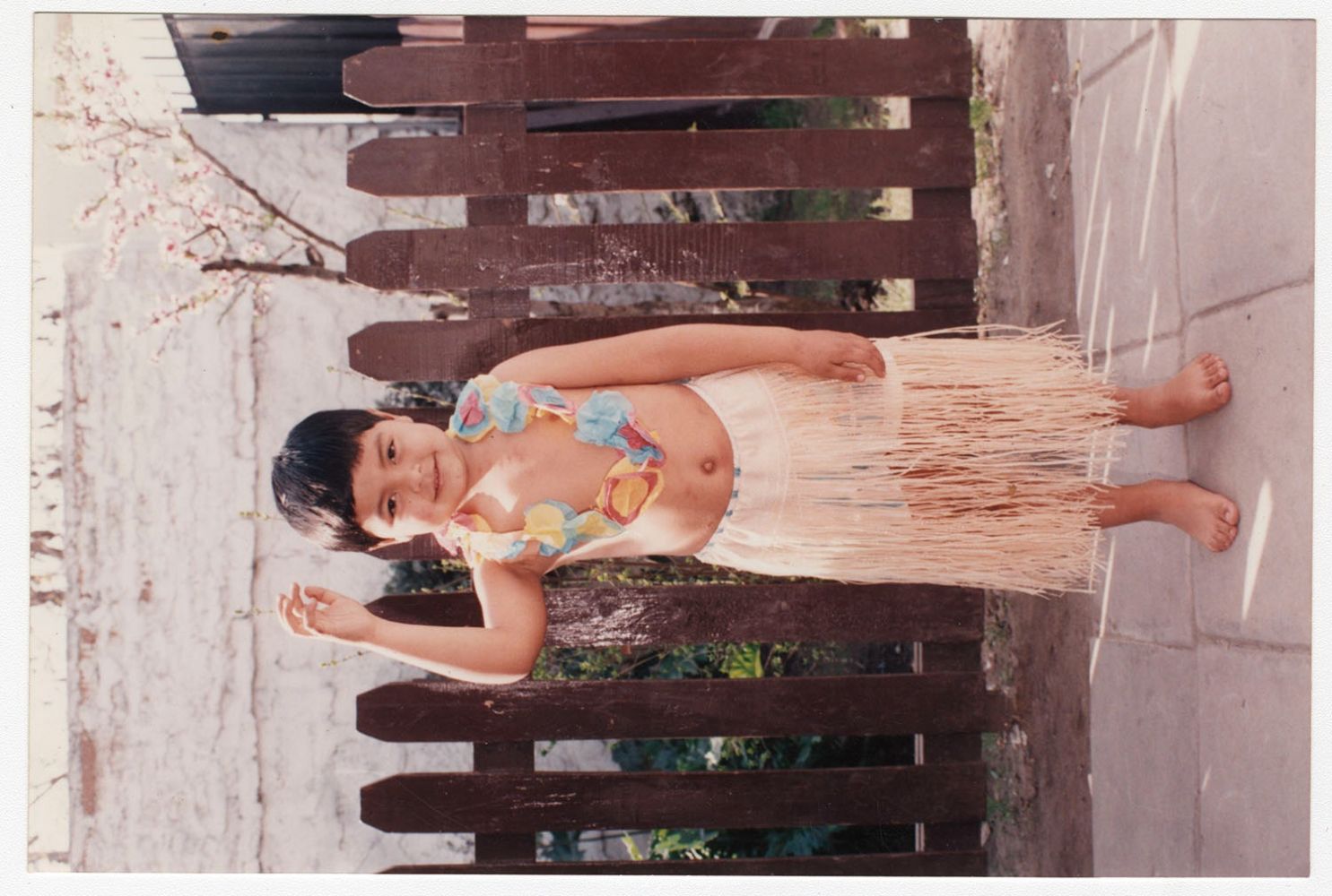 • Sebastian Pincheira vestido con traje de pascuense en el colegio año 90.