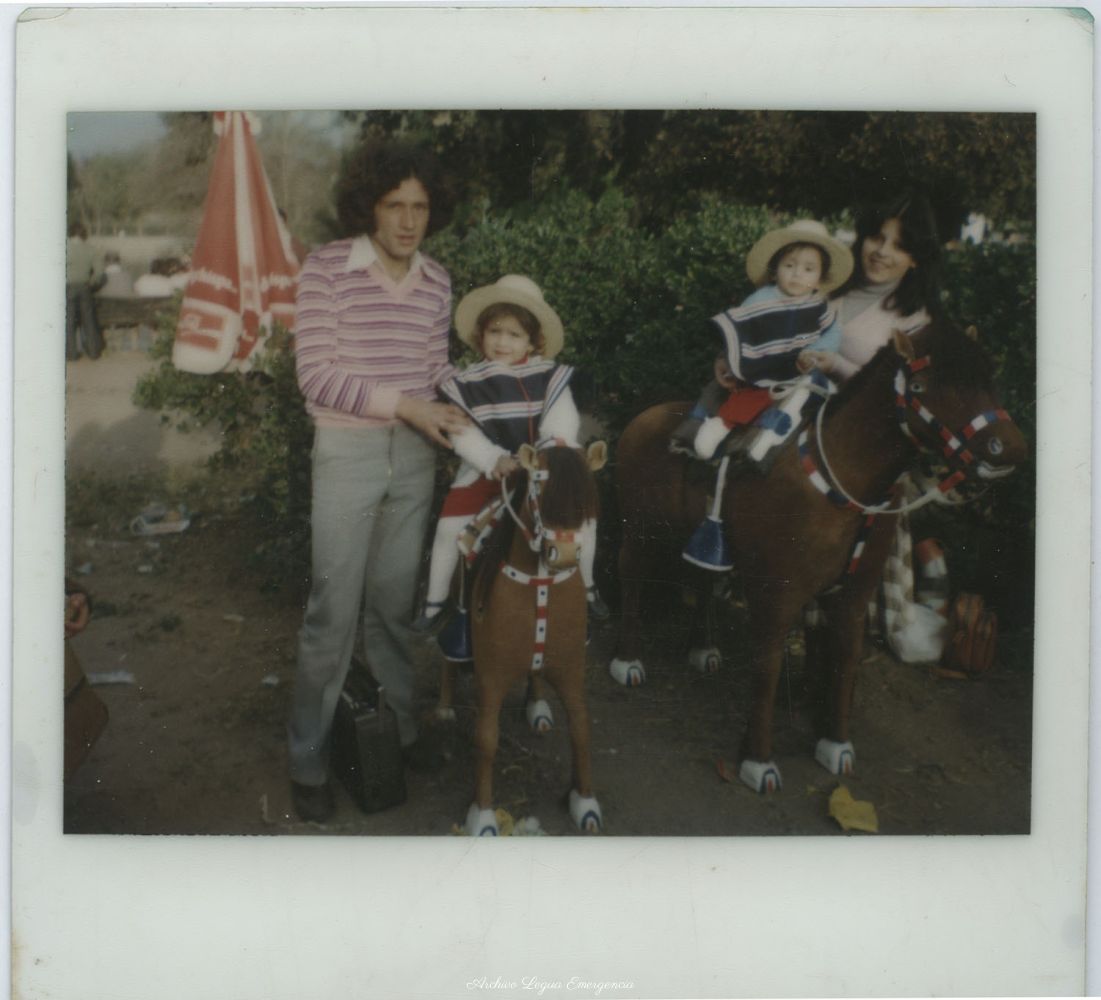 En la imagen Jorge lara Santibañez junto a Jeannette Pizarro y sus hijos Jeannette y Jorge Lara Pizarrolos que estan sobre caballos de madera en el Parque O"Higgins. Año 1982, paseo de fiestas patrias.Lara_Pizarro Lara_PizarroDate: December 15th, 2020