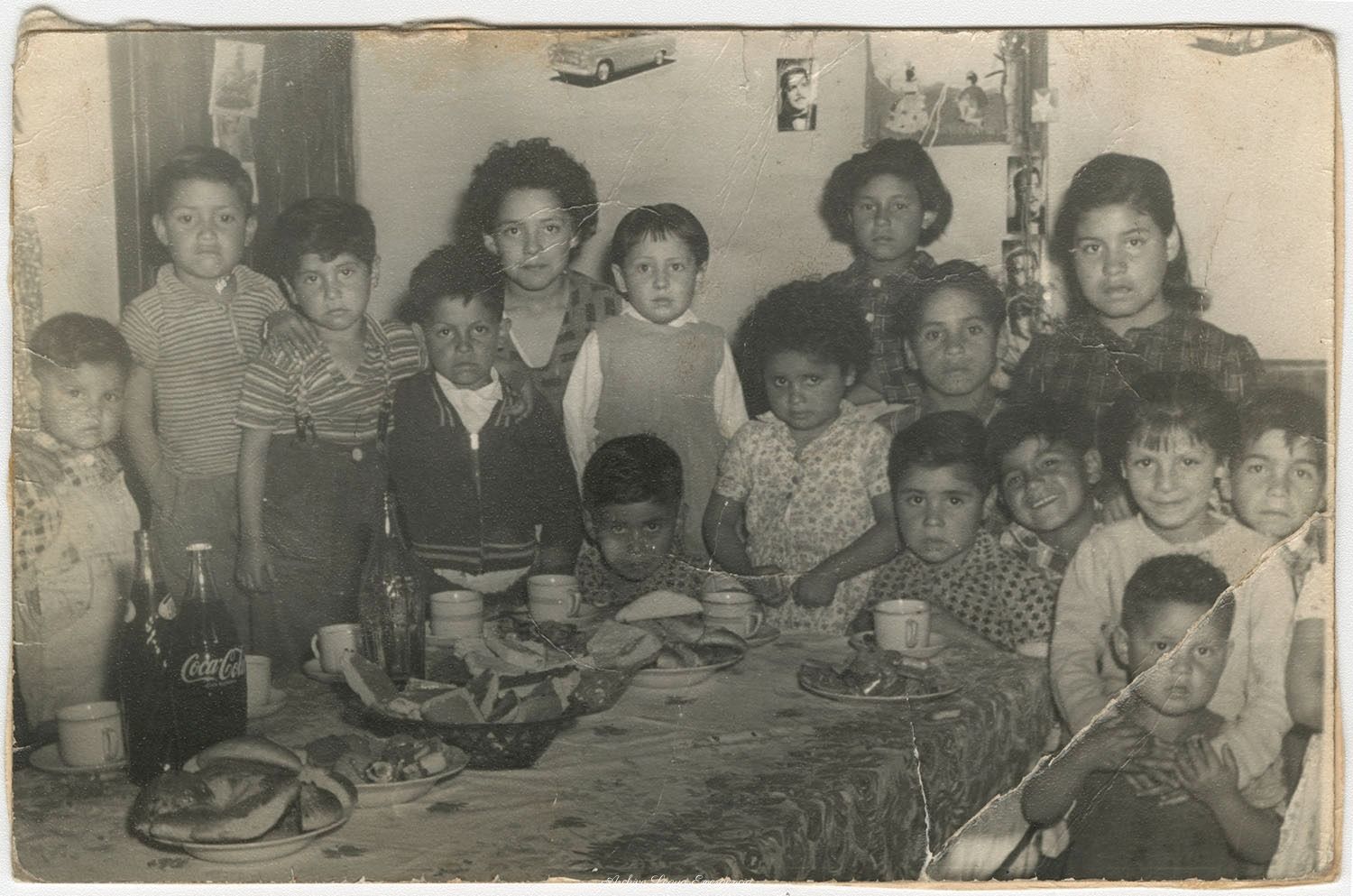 Este fondo está compuesto por más de mil ochocientas imágenes fotográficas donadas por familias, pobladoras y pobladores de Legua Emergencia, de las cuales ésta página solo contiene una porción. Desde álbumes íntegros y custodiados, hasta fotografías esparcidas y anónimas que se van quedando en el presente de la vida. En las imágenes, predomina el blanco y negro, pero paulatinamente aparece el color. Asimismo, surge la posibilidad, por parte de los pobladores, de tener una máquina fotográfica, que les permite no solo ser retratados, sino también tomar las fotografías que ensueñan. El registro se dispersa, con él las motivaciones y escenas que se retratan. No desde hace mucho, la memoria visual de Legua Emergencia tiene heterogéneos, anónimos y casuales cultores.