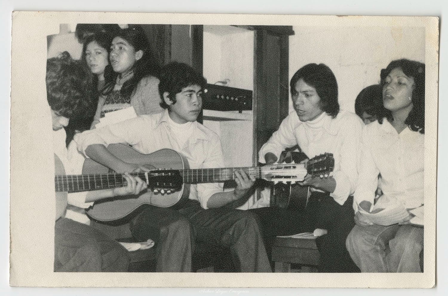 Mario Alarcón Rivas tocando la guitarra en el coro de la capilla Nnuestra señora de la Paz. Años 70.Mario Alarcon Mario AlarconDate: December 15th, 2020