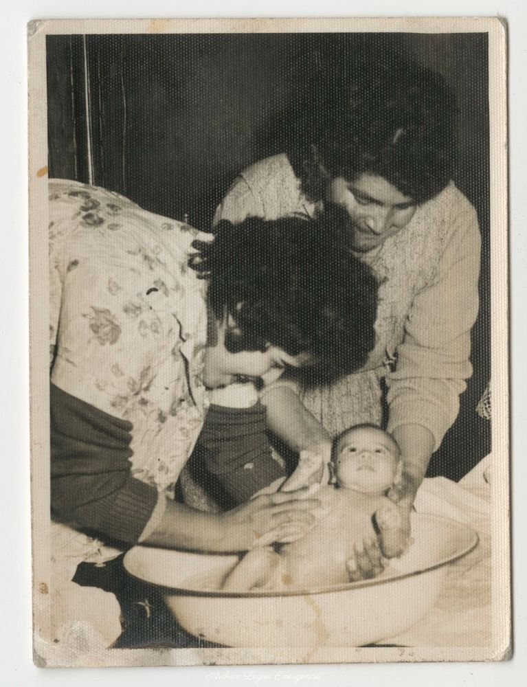 Señora Iris bañando a Ana Maria Alarcón Rivas junto a mamá Tina. Año 1962.Mario Alarcon Mario AlarconDate: December 15th, 2020